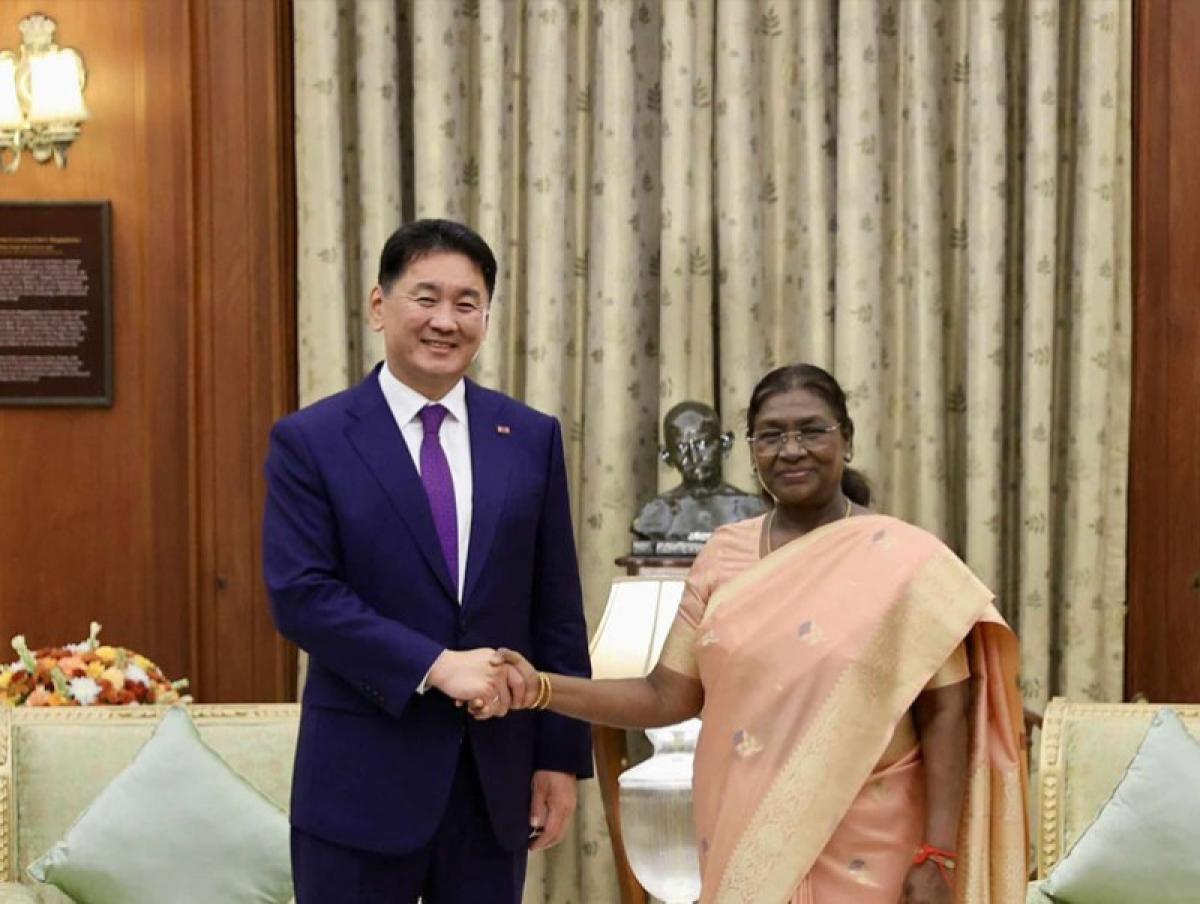 Бүгд Найрамдах Энэтхэг Улсад төрийн айлчлал хийж буй Монгол Улсын Ерөнхийлөгч Ухнаагийн Хүрэлсүх тус улсын Ерөнхийлөгч Дроупади Мурму-тай Ерөнхийлөгчийн ордонд уулзлаа.