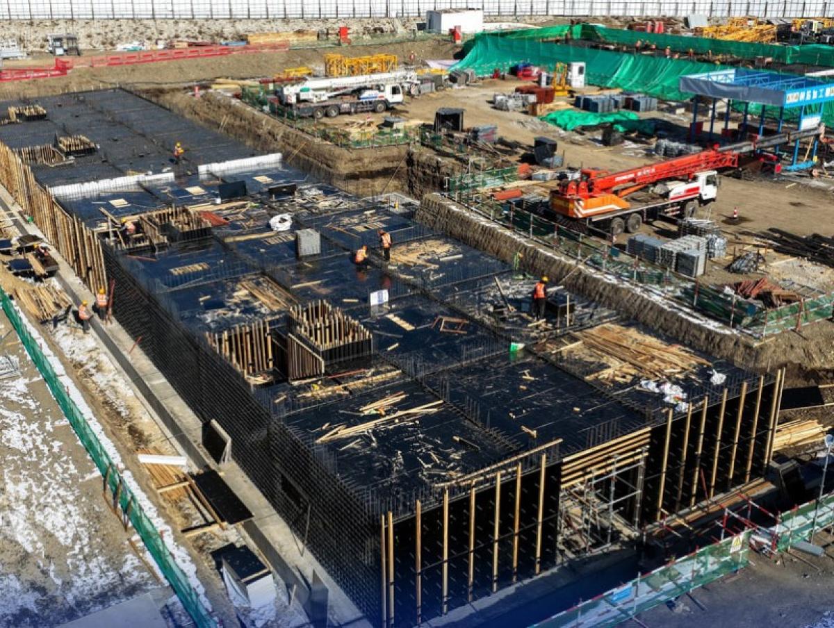 Төслийн долоон багц бүтээн байгуулалтын ажил үе шаттайгаар үргэлжилж байна. Тодруулбал, Багц 1 болон Багц 2-ын бэлтгэл ажил 98 гаруй хувь, суурь ухмалын ажил 90 гаруй хувь, суурь цутгалтын ажил 80 орчим хувьтай хийгджээ. Үүнээс гадна Багц 1-ийн зоорийн давхрын арматурчлал 19 хувь, Багц 2-ын зоорийн давхрын арматурчлал 66 орчим хувь, 1-р давхрын арматурчлал 22 орчим хувьтай хийгдэж, барилга угсралтын ажил үргэлжилж байна.